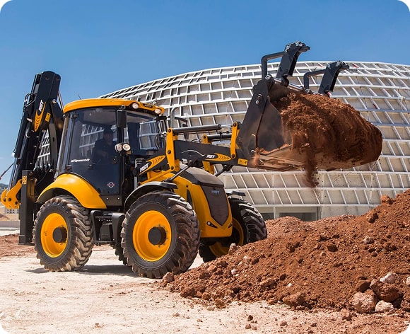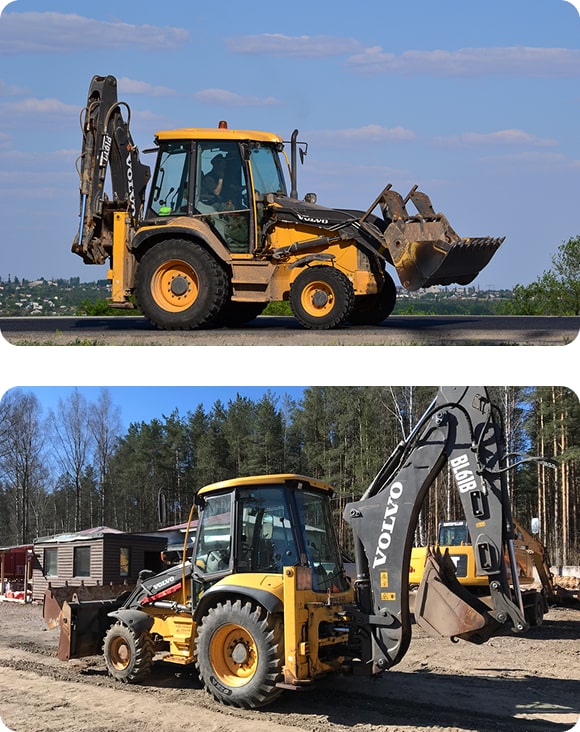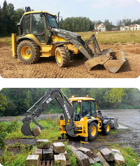 Объем фронтального ковша - 1,1 м.куб. Объем экскаваторного ковша - 0,4 м.куб. Мощность двигателя - 99 л.с. Глубина копания - 5800 мм Эксплуатационная масса - 8070 кг
