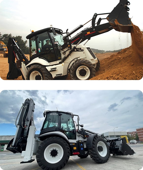 Объем фронтального ковша - 1,1 м.куб. Объем экскаваторного ковша - 0,25 м.куб. Мощность двигателя - 105 л.с. Грузоподъемность - 2950 кг Глубина копания - 5400 мм