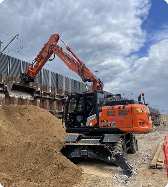 Эксплуатационная масса - 20 т Максимальная глубина копания - 6,3 м Навесное оборудование - гидромолот, планировочный ковш Объем ковша - 1,3 м3